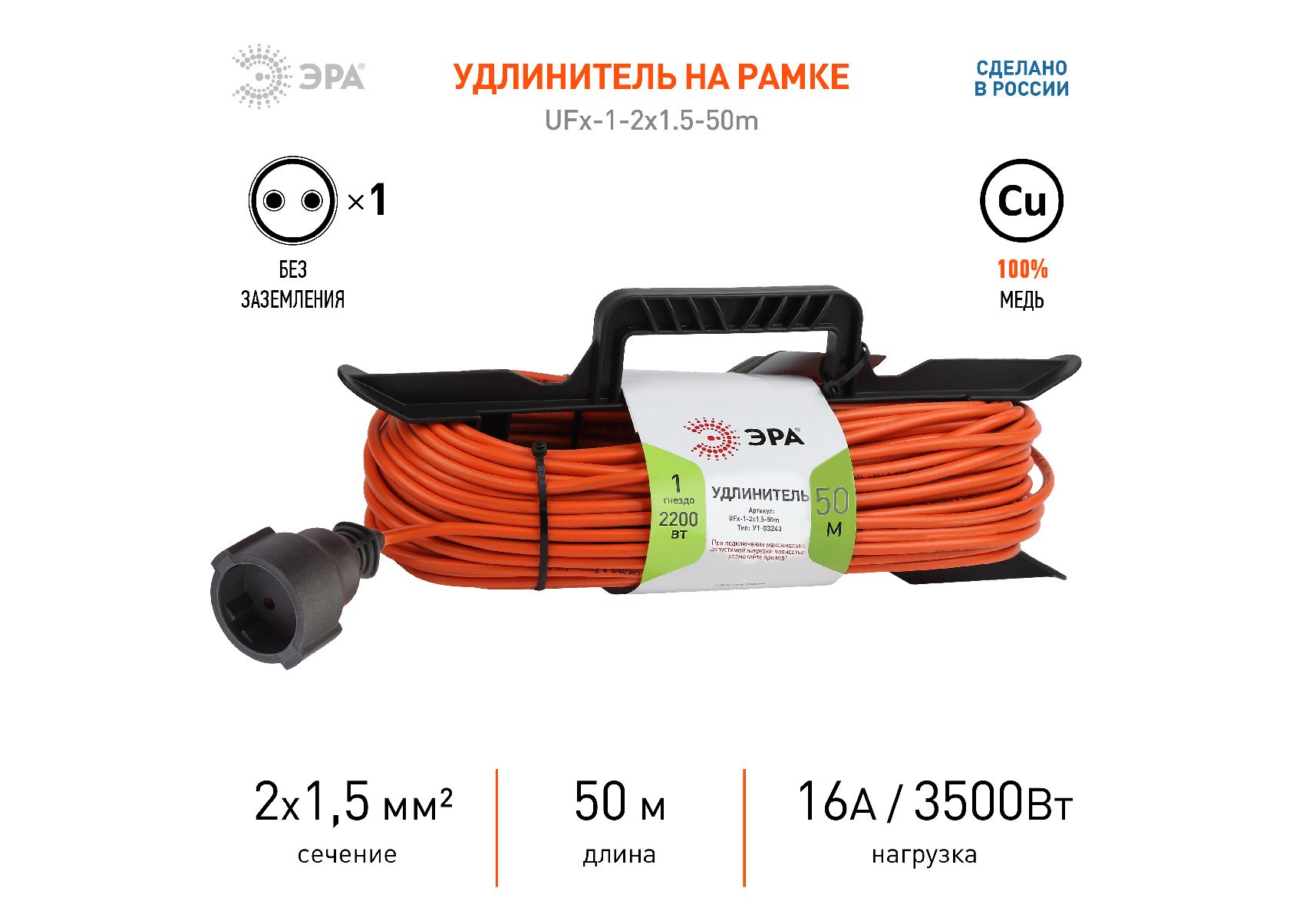 Удлинитель силовой Эра UFx-1-2x1.5-50m Б0046823