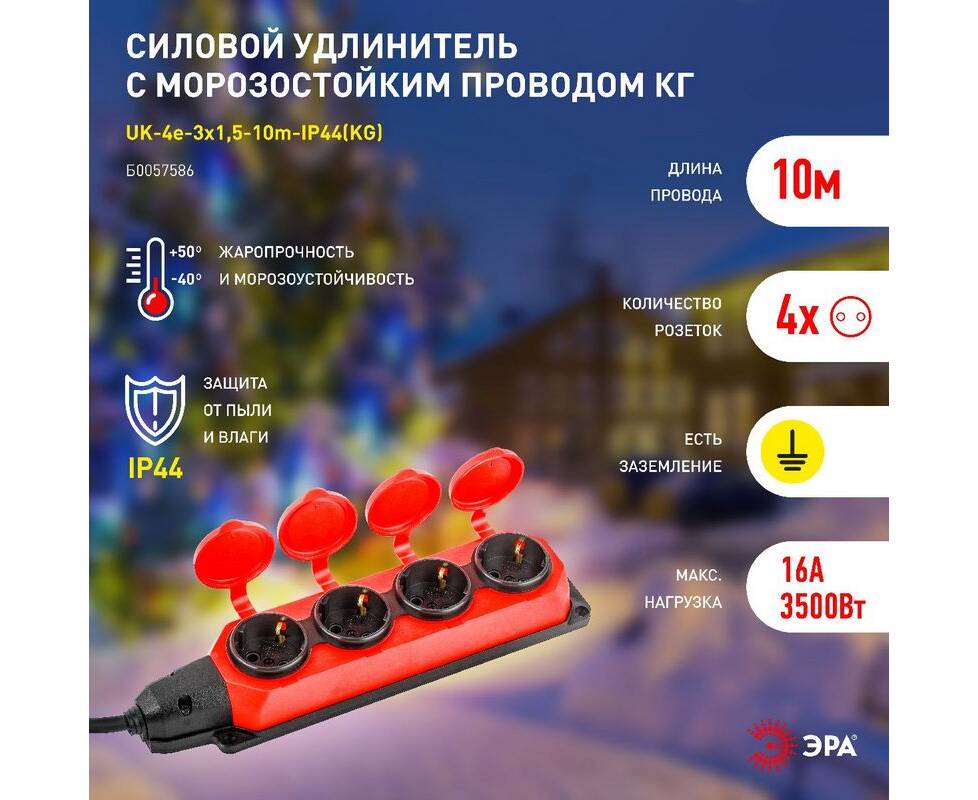 Удлинитель силовой Эра UK-4e-3x1,5-10m-IP44(KG) Б0057586