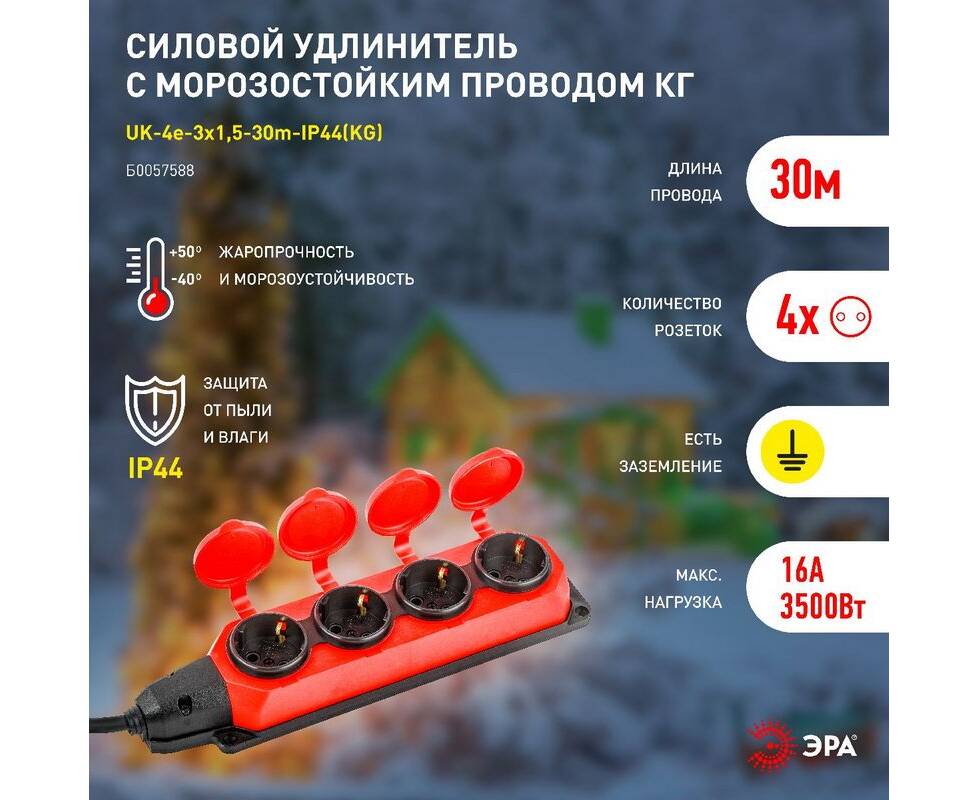 Удлинитель силовой Эра UK-4e-3x1,5-30m-IP44(KG) Б0057588
