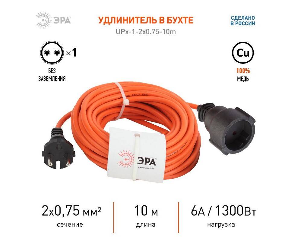 Удлинитель силовой Эра UPx-1-2x0.75-10m Б0043036
