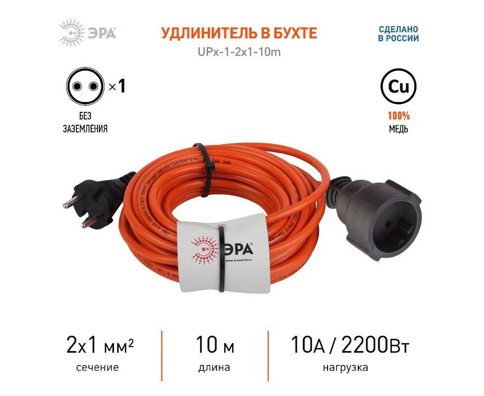 Удлинитель силовой Эра UPx-1-2x1-10m Б0046805