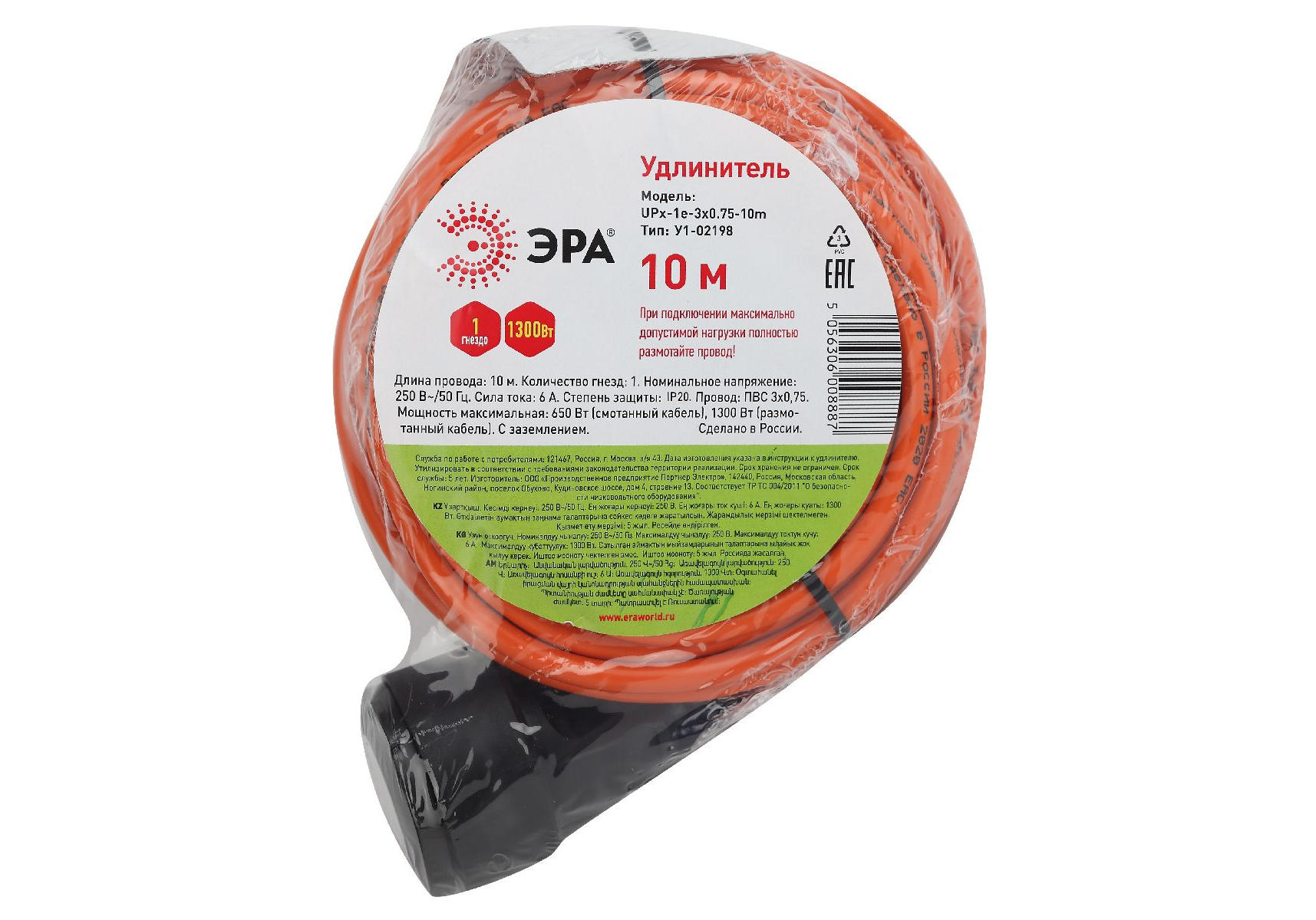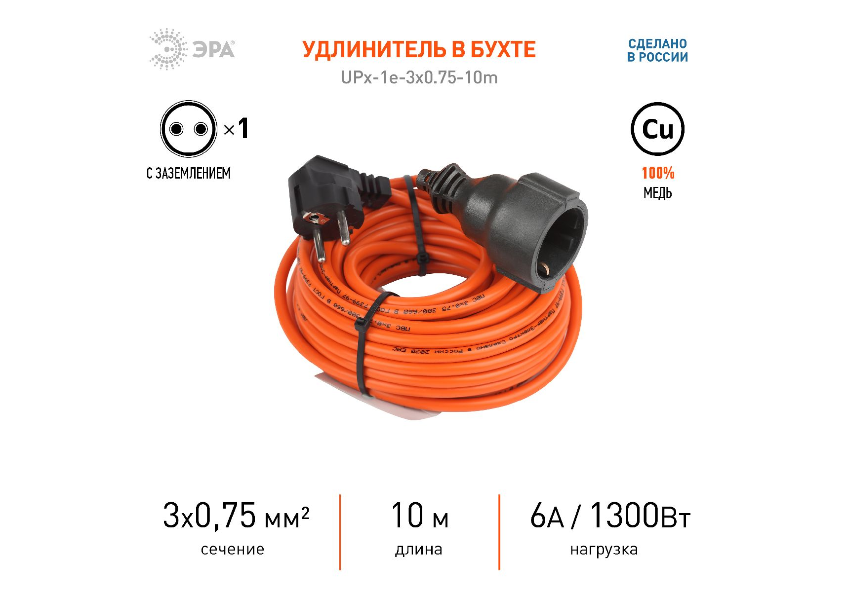 Удлинитель силовой Эра UPx-1e-3x0.75-10m Б0046810