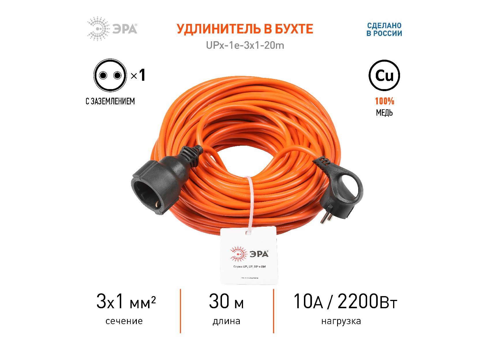 Удлинитель силовой Эра UPx-1e-3x1-30m Б0048679