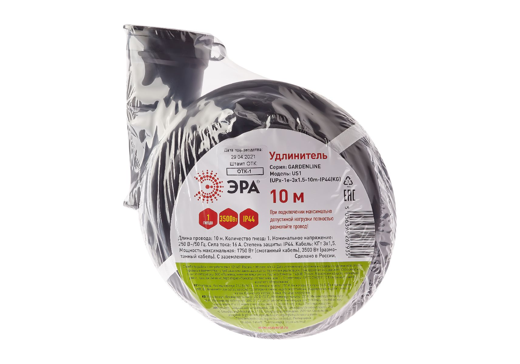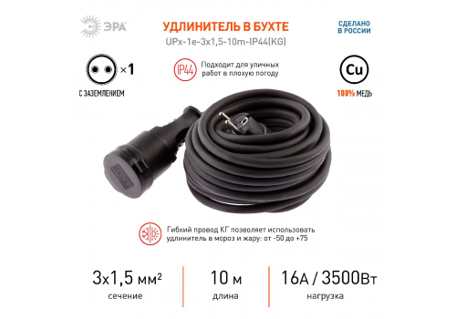 Удлинитель силовой Эра UPx-1e-3x1,5-10m-IP44(KG) Б0050857