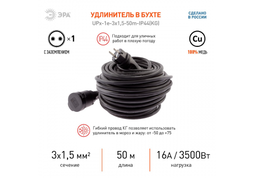 Удлинитель силовой Эра UPx-1e-3x1,5-50m-IP44(KG) Б0050861