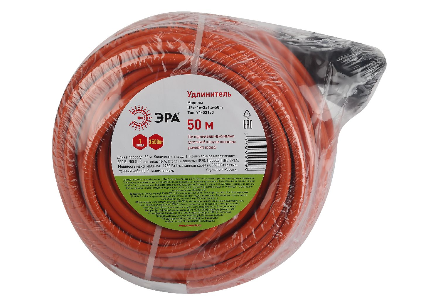 Удлинитель силовой Эра UPx-1e-3x1.5-50m Б0046819