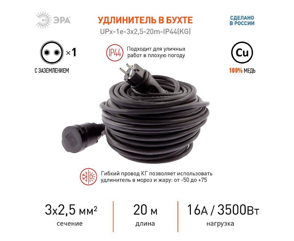Удлинитель силовой Эра UPx-1e-3x2,5-20m-IP44(KG) Б0050863