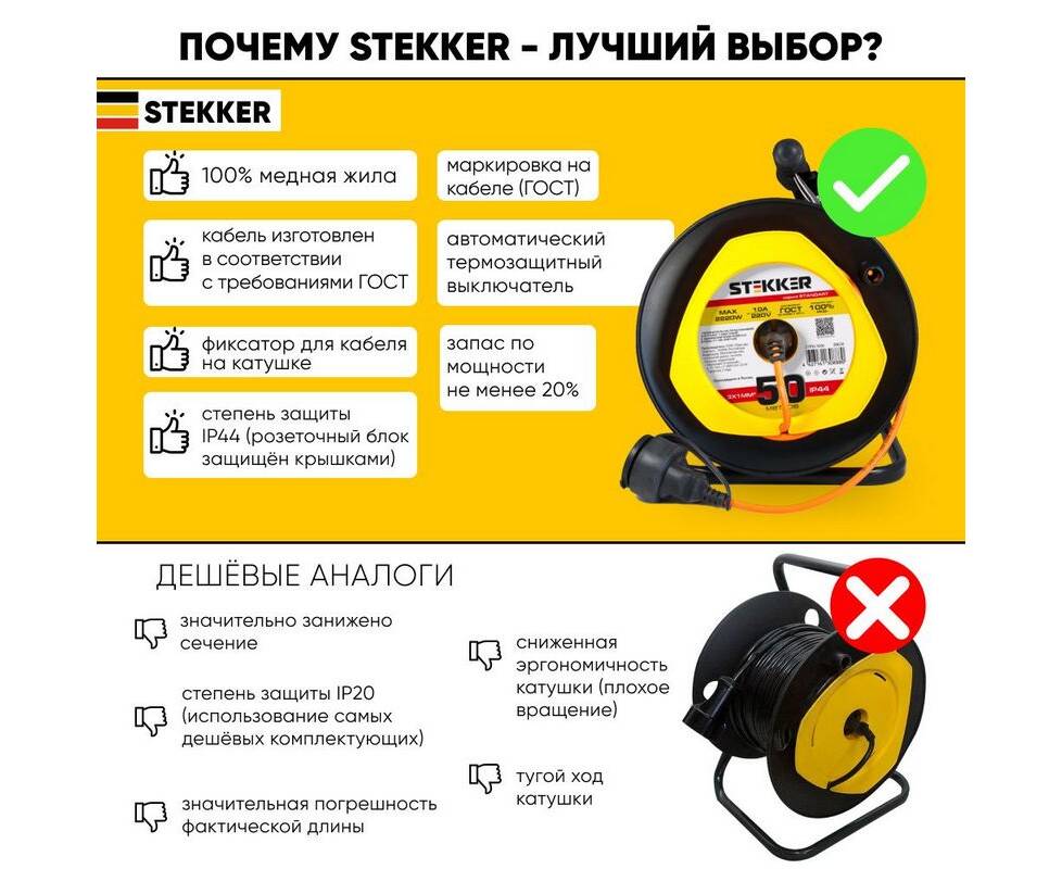 Удлинитель Stekker Standart 1гн 50м с/з STD02-11-50 39636