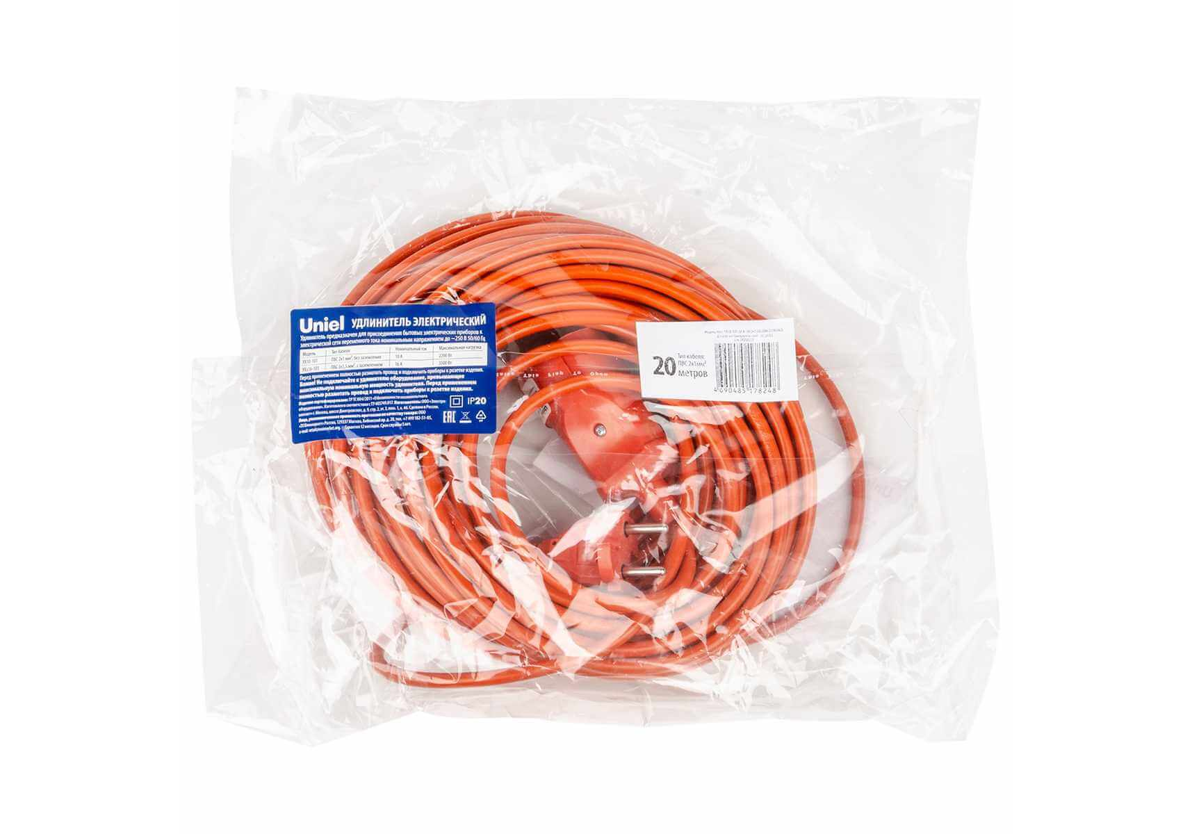 Удлинитель Uniel Ultra 1гн х 20м б/з YX10-101 /UCK-1N/2x1,00/20M/O Orange UL-00010794