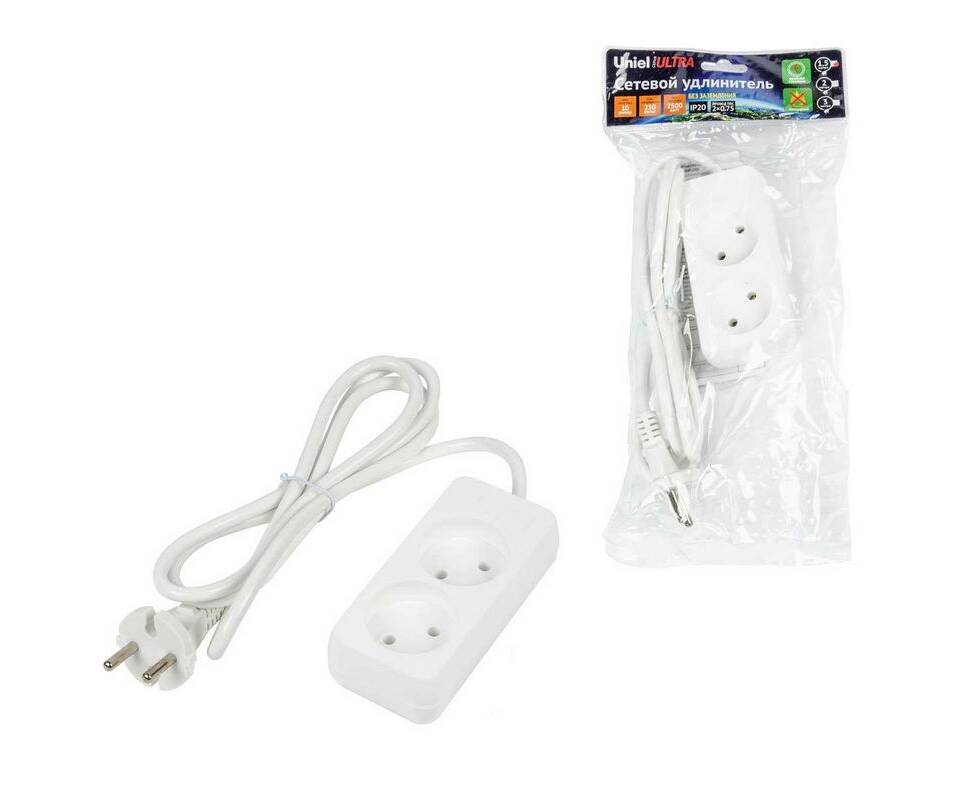 Удлинитель Uniel Ultra 2гн х 1,5м б/з S-CU2-1,5 White UL-00009975