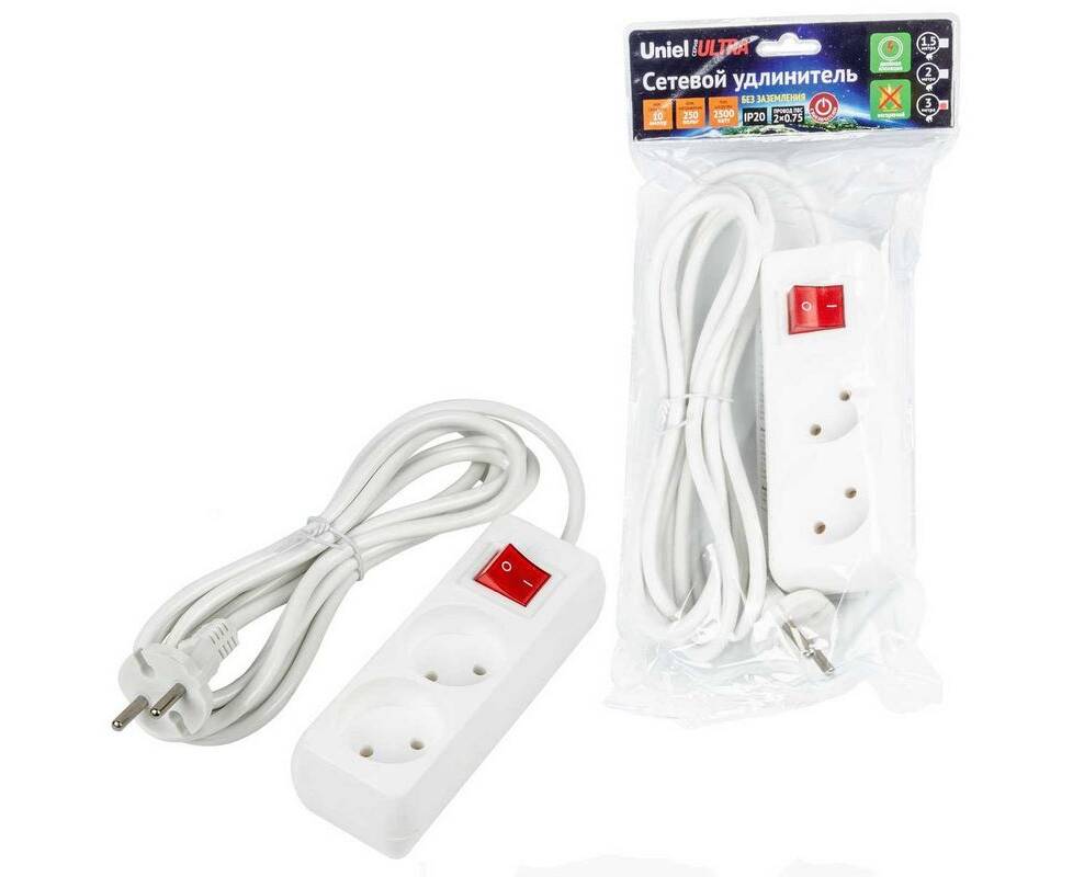 Удлинитель Uniel Ultra 2гн х 3м б/з S-CU2-3B White UL-00009992