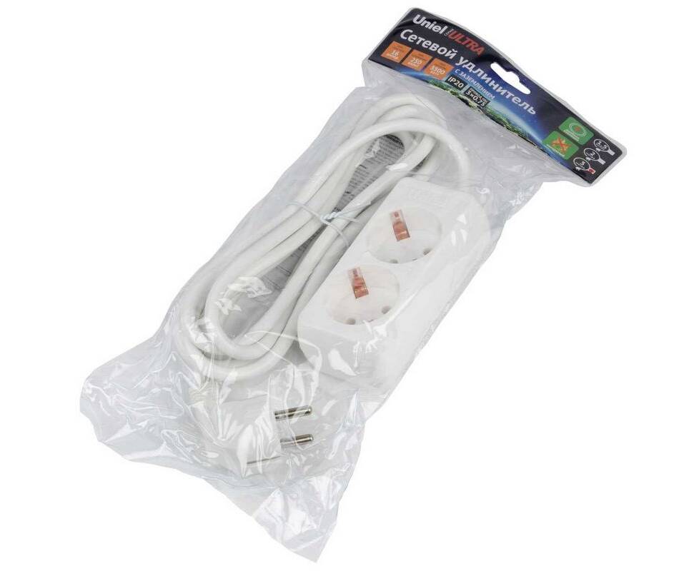 Удлинитель Uniel Ultra 2гн х 3м с/з S-GCU2-3 White UL-00009998