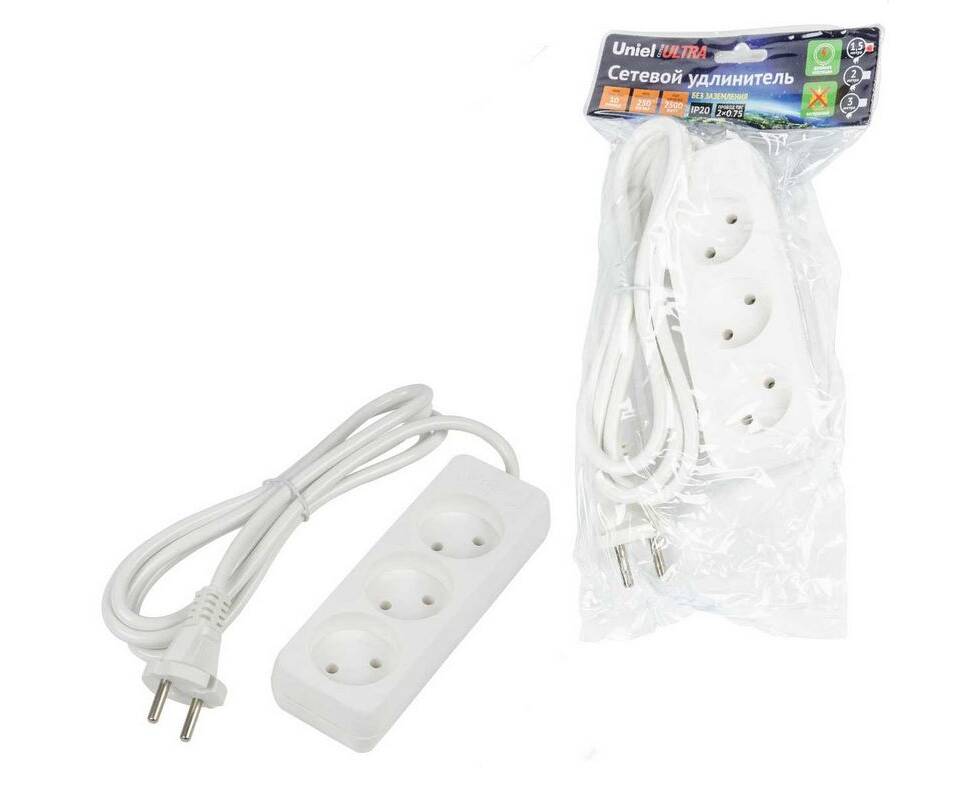 Удлинитель Uniel Ultra 3гн х 1,5м б/з S-CU3-1,5 White UL-00009979