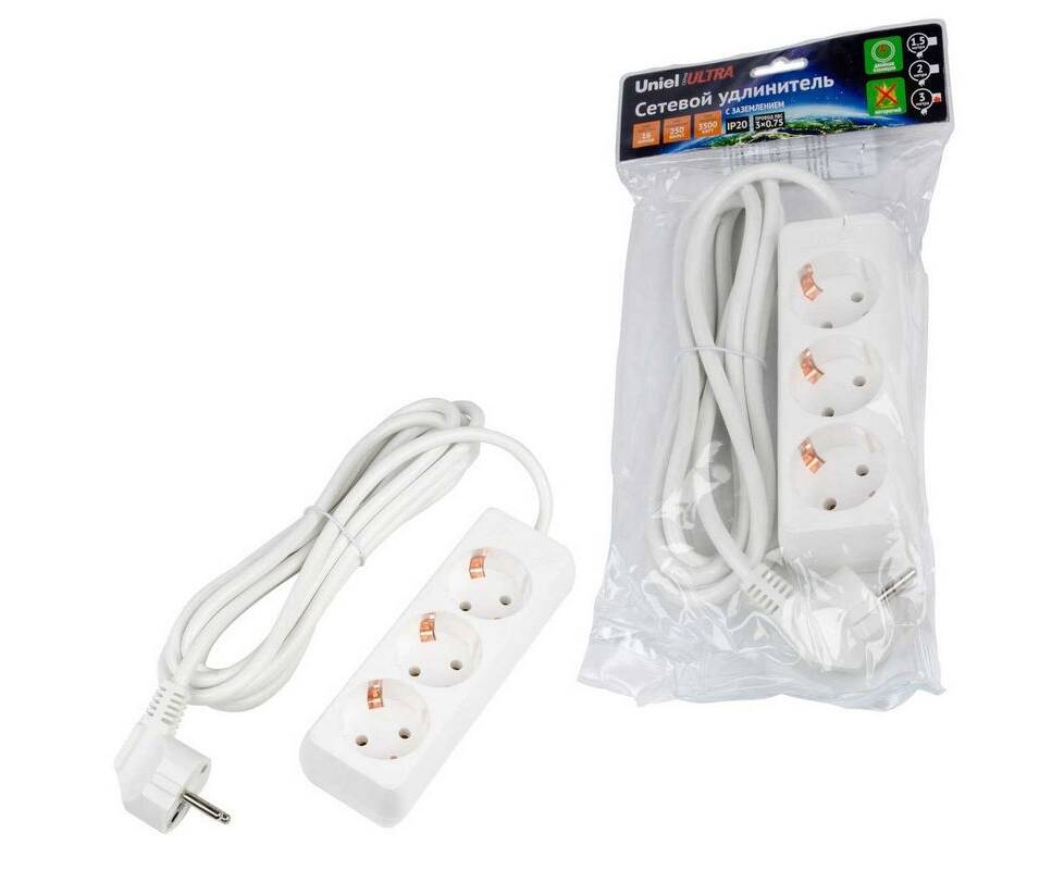 Удлинитель Uniel Ultra 3гн х 3м с/з S-GCU3-3 White UL-00010001