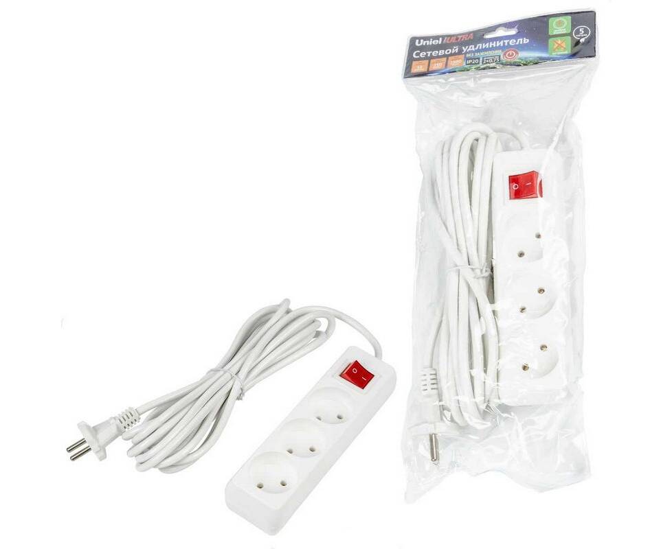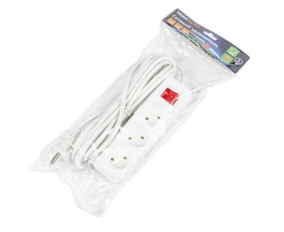 Удлинитель Uniel Ultra 3гн х 5м б/з S-CU3-5B White UL-00009996
