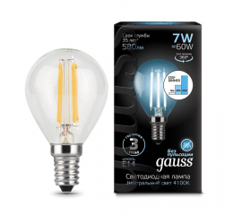 Лампа светодиодная филаментная диммируемая Gauss E14 7W 4100K прозрачная 105801207-S