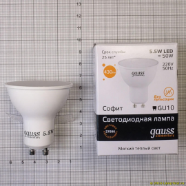Лампа светодиодная Gauss GU10 5.5W 3000K матовая 13616