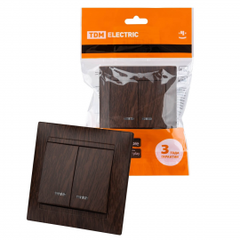 Выключатель двухклавишный TDM Electric Лама 10А 250V с подсветкой венге SQ1815-0405