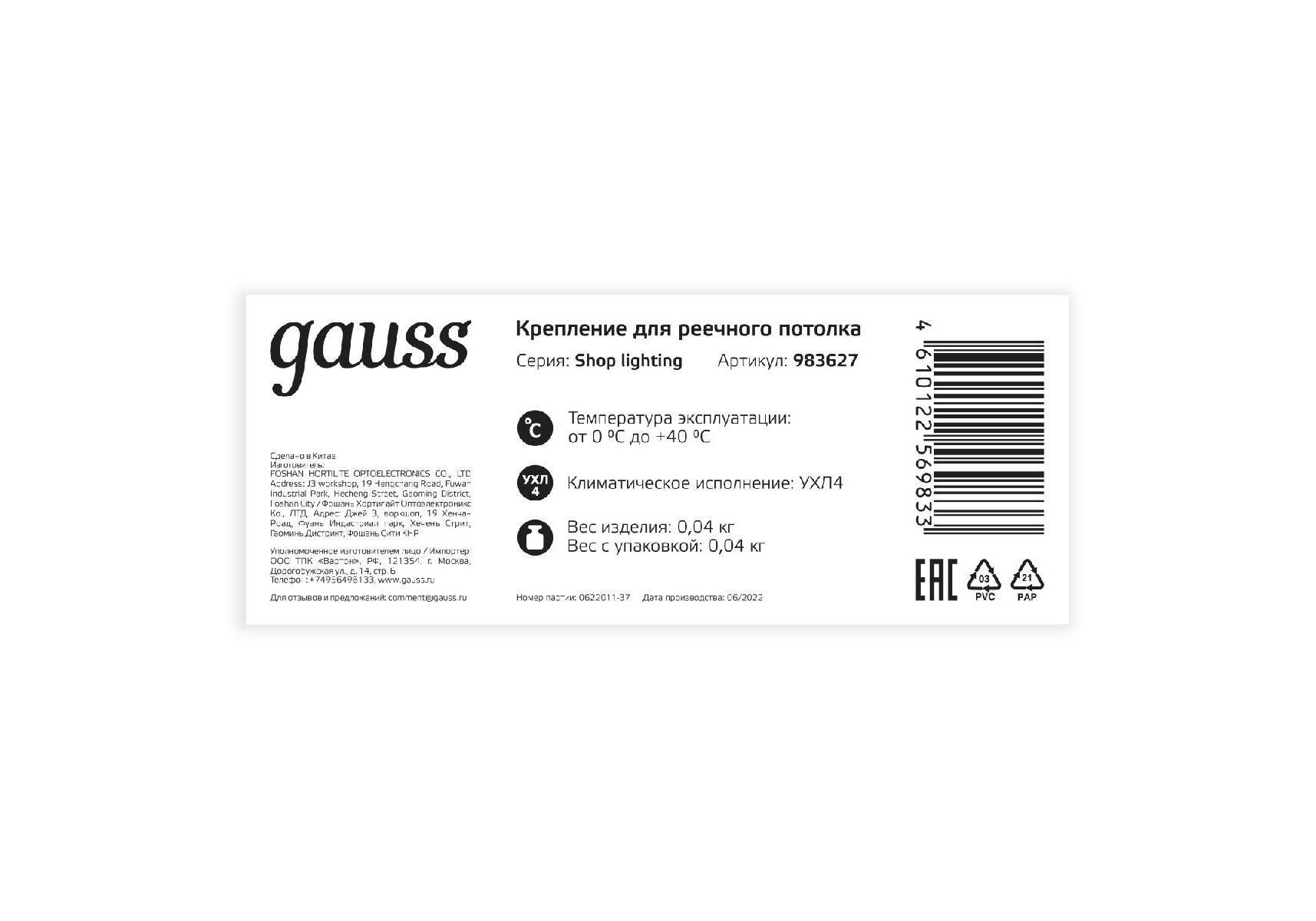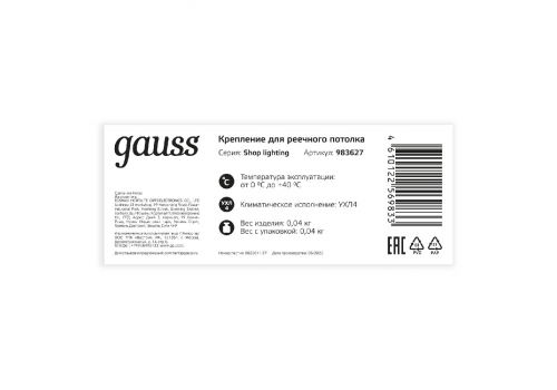 Крепление для реечного потолка Gauss Shop Lighting 983627