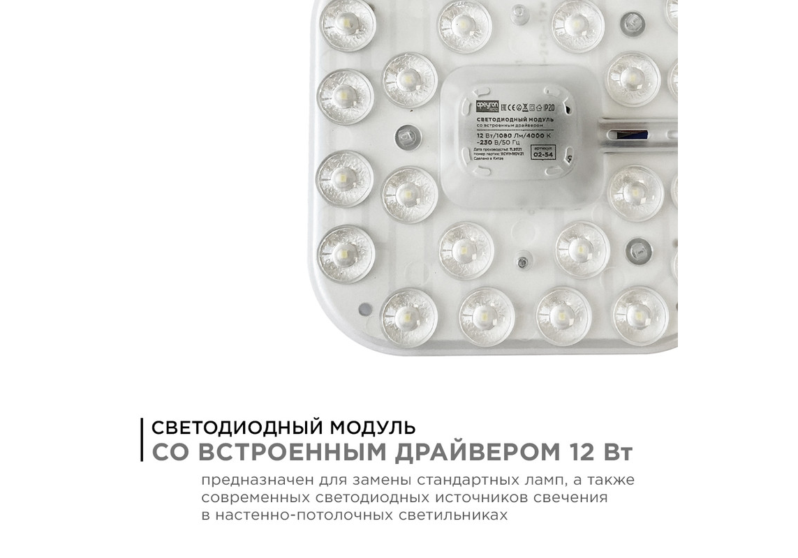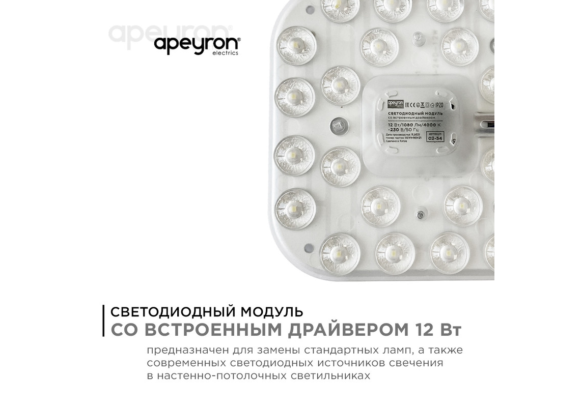 Светодиодный модуль со встроенным драйвером Apeyron 230В 2835 12Вт 1080 лм 4000К 02-54