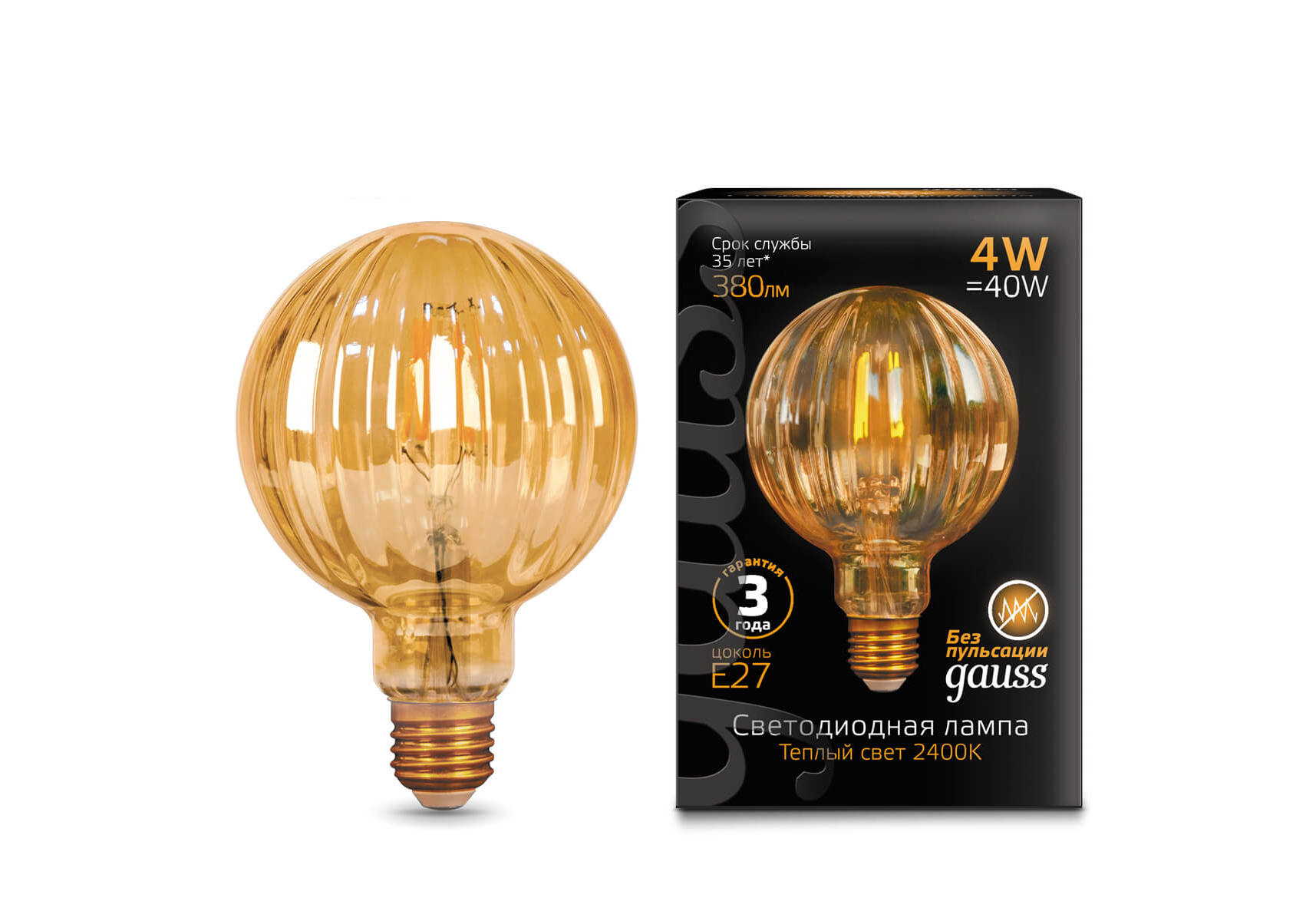 Лампа светодиодная филаментная Gauss E27 4W 2400K золотая 147802004