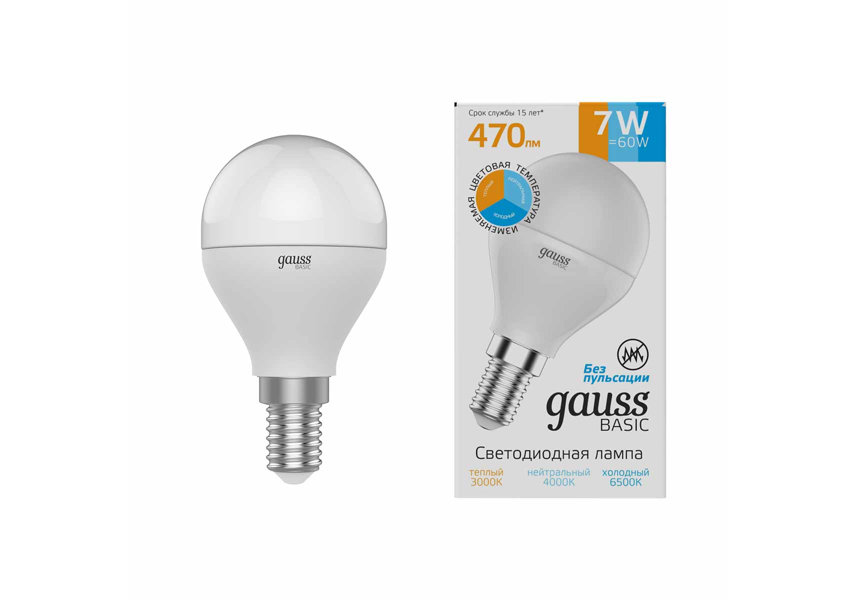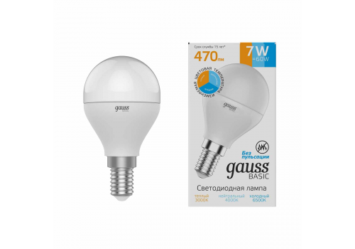 Лампа светодиодная диммируемая Gauss E14 7W 3000K-4000K-6500K матовая 1053147