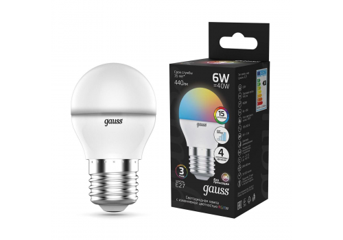 Лампа светодиодная диммируемая Gauss E27 6W 3000-6500K матовая 105102406