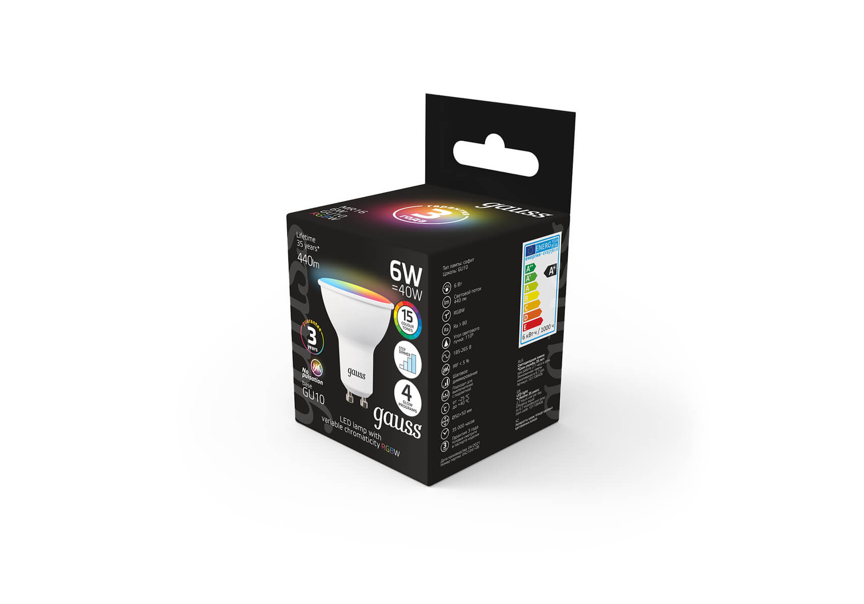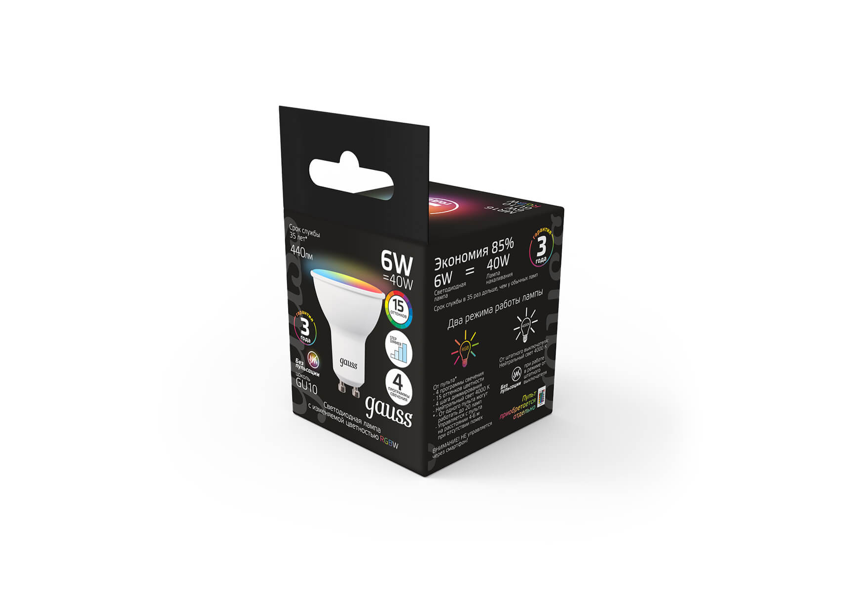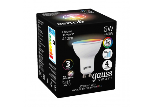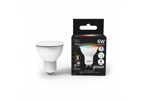 Лампа светодиодная диммируемая Gauss GU10 6W RGBW матовая 101106406