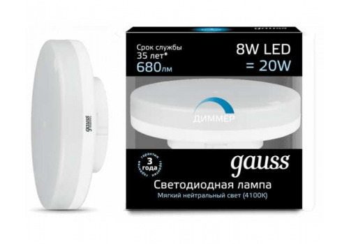 Лампа светодиодная диммируемая Gauss GX53 8W 4100K матовая 108408208-D