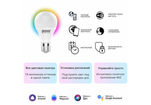 Лампа светодиодная диммируемая Gauss Smart Home E27 10W 2700-6500K RGBW матовая 1180112