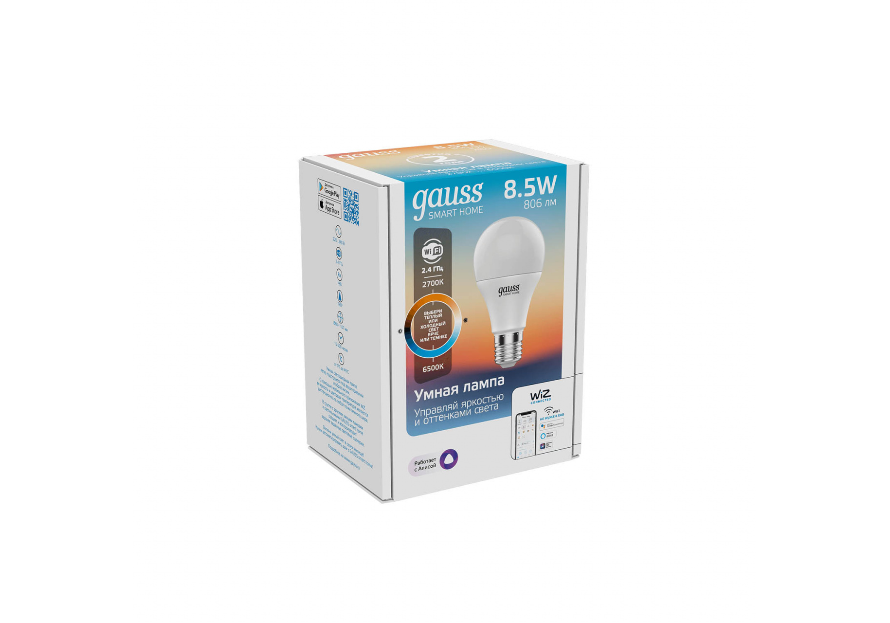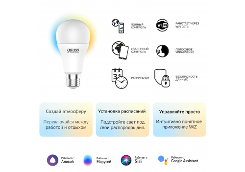 Лампа светодиодная диммируемая Gauss Smart Home E27 8,5W 2700-6500K матовая 1130112