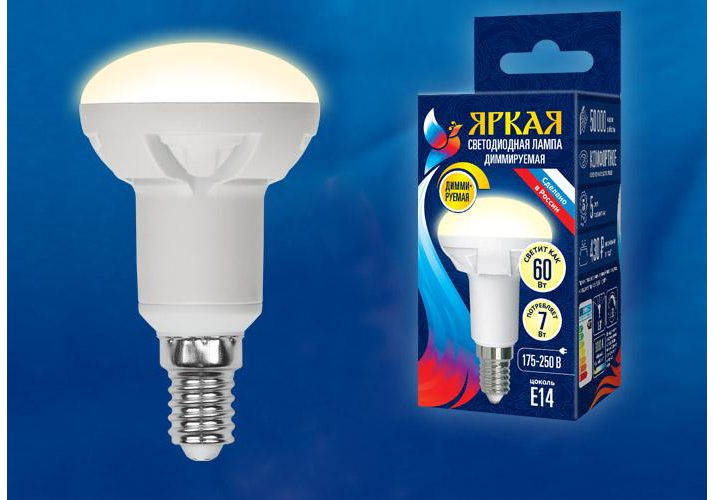Лампа светодиодная диммируемая (UL-00004709) Uniel E14 7W 4000K матовая LED-R50 7W/4000K/E14/FR/DIM