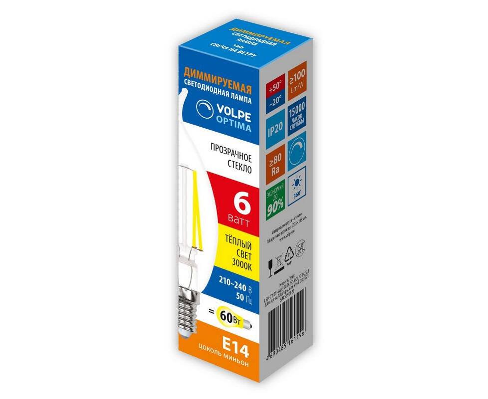 Лампа светодиодная диммируемая Volpe Optima LED-CW35-6W/3000K/E14/CL/DIM/SLF UL-00009243