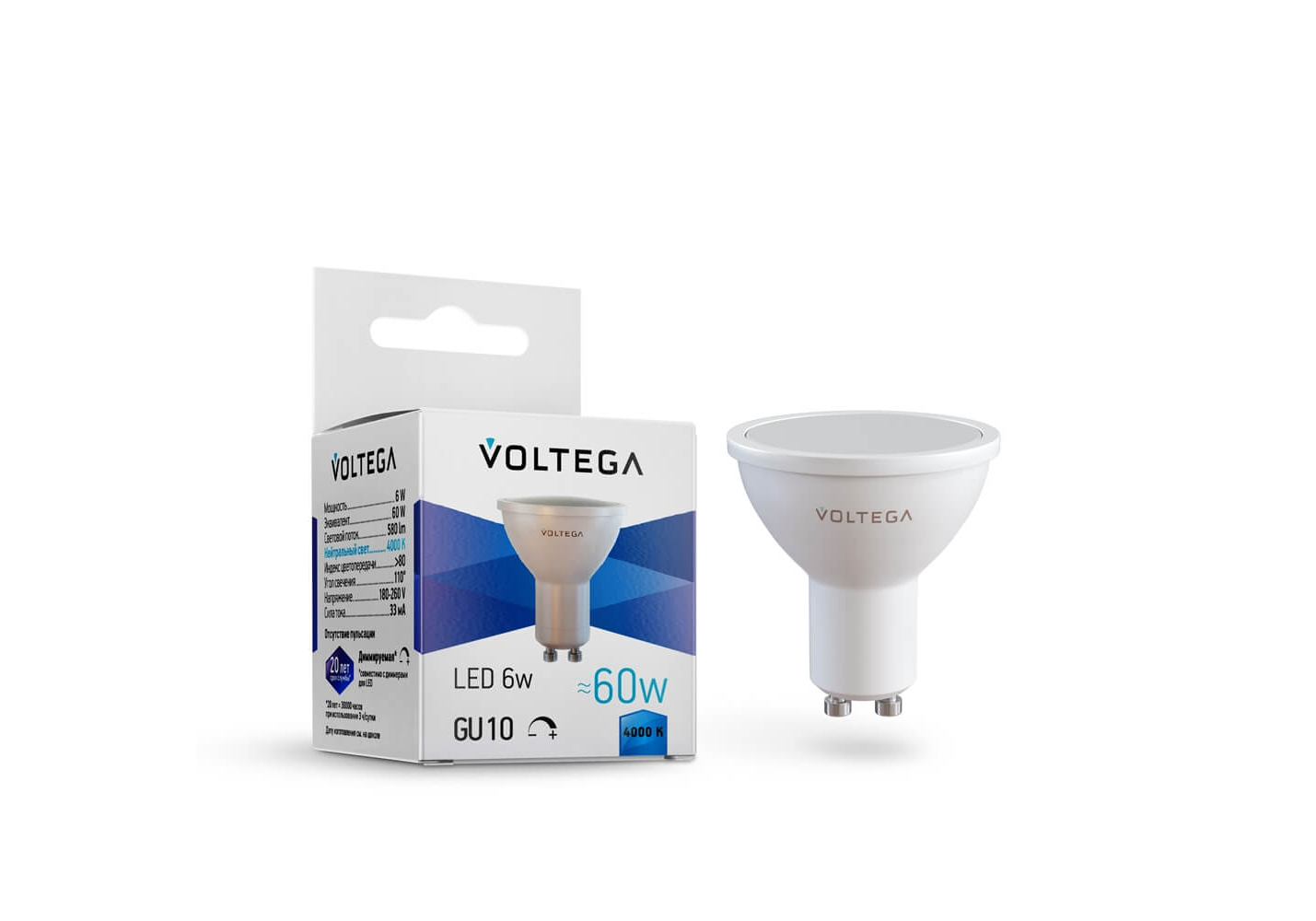 Лампа светодиодная диммируемая Voltega GU10 6W 4000K матовая 8458