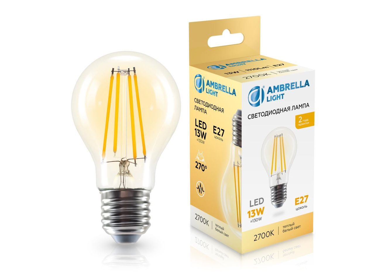 Филаментная светодиодная лампа Ambrella Light Bulbing E27 13W 2700K 601313