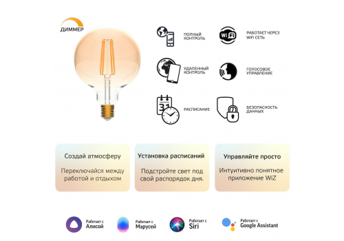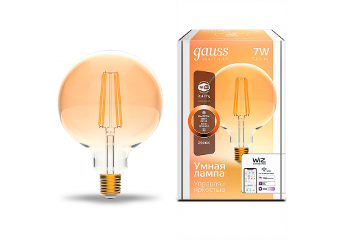 Лампа светодиодная диммируемая филаментная Gauss Smart Home Filament E27 7W 2500K золотистая 1320112