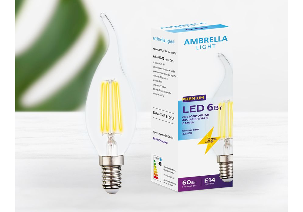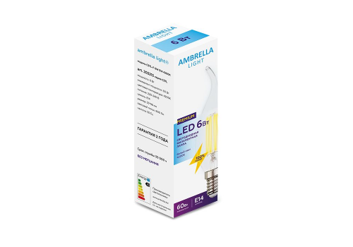 Лампа светодиодная филаментная Ambrella light E14 6W 4200K прозрачная 202215