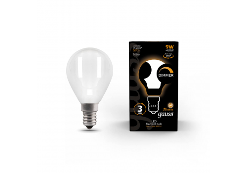 Лампа светодиодная филаментная диммируемая Gauss E14 9W 3000К матовая 105201109-D