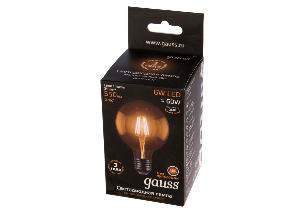 Лампа светодиодная филаментная диммируемая Gauss E27 6W 2400K золотая 105802006-D