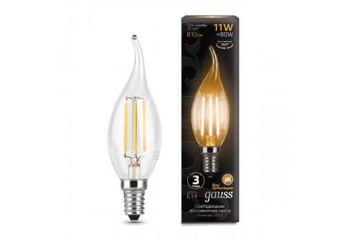 Лампа светодиодная филаментная Gauss E14 11W 2700К прозрачная 104801111
