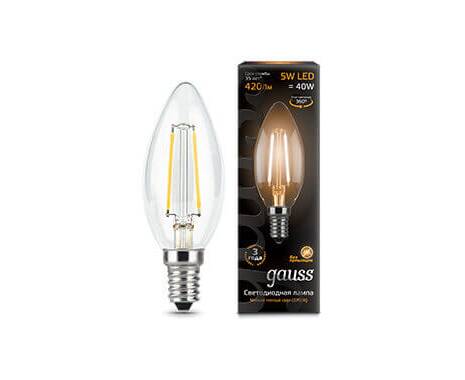 Лампа светодиодная филаментная Gauss E14 5W 2700К прозрачная 103801105