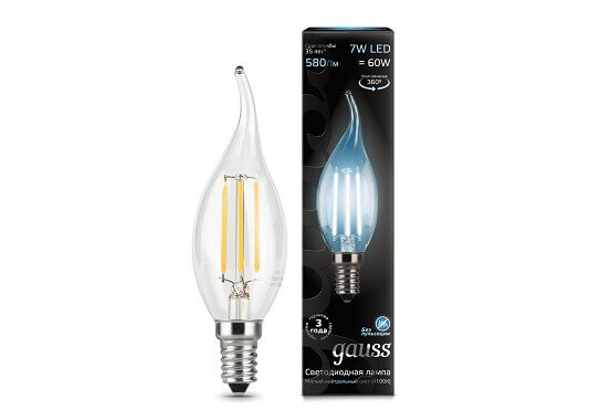 Лампа светодиодная филаментная Gauss E14 7W 4100К прозрачная 104801207