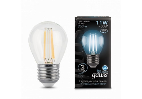 Лампа светодиодная филаментная Gauss E27 11W 4100K прозрачная 105802211
