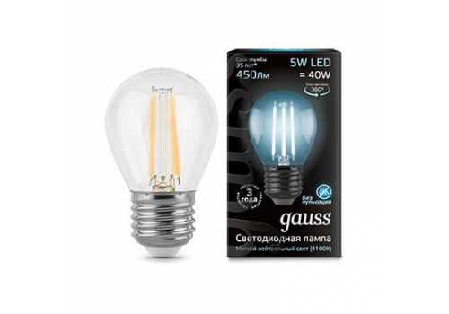 Лампа светодиодная филаментная Gauss E27 5W 4100K прозрачная 105802205