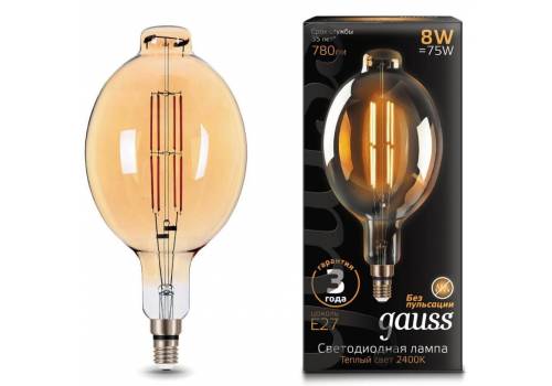 Лампа светодиодная филаментная Gauss E27 8W 2400K золотая 151802008