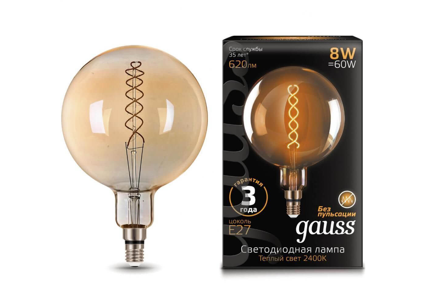 Лампа светодиодная филаментная Gauss E27 8W 2400K золотая 154802008