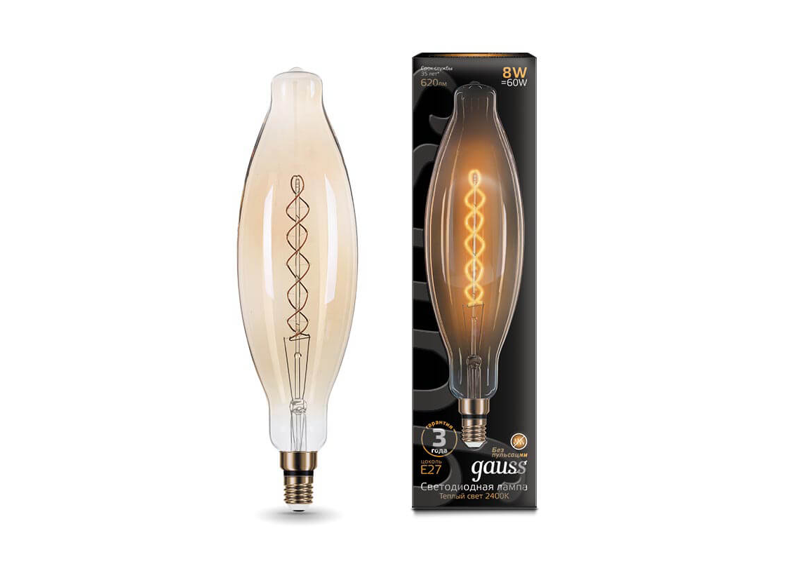 Лампа светодиодная филаментная Gauss E27 8W 2400K золотая 156802008