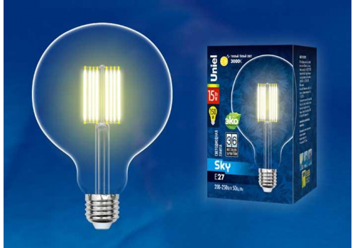 Лампа светодиодная филаментная (UL-00004859) Uniel E27 10W 4000K прозрачная LED-G125-10W/NW/E27/CL P