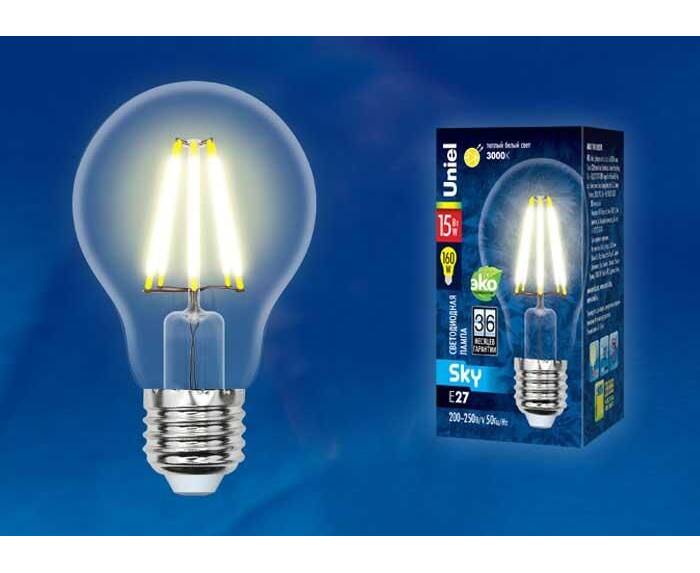 Лампа светодиодная филаментная (UL-00004867) Uniel E27 12W 4000K прозрачная LED-A60-12W/4000K/E27/CL