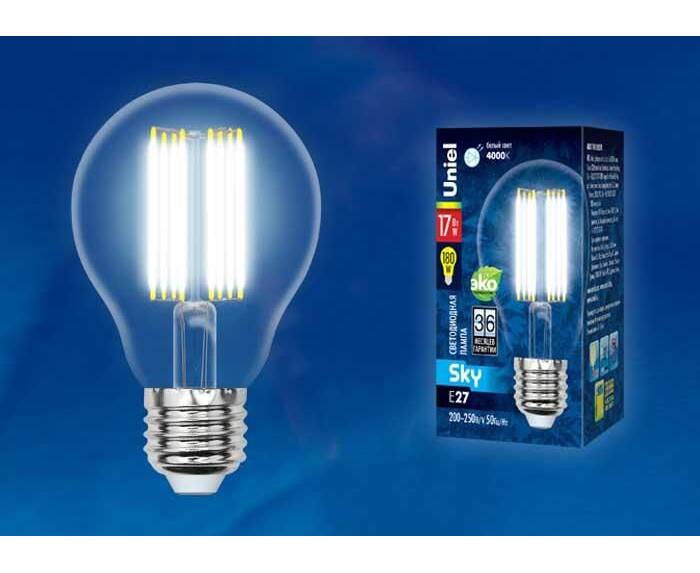 Лампа светодиодная филаментная (UL-00004870) Uniel E27 17W 3000K прозрачная LED-A70-17W/3000K/E27/CL